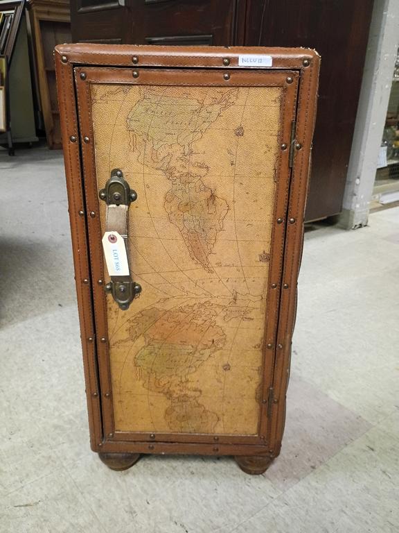 Lot 868: Leather Trunk Form 3-Shelf Small Cabinet.