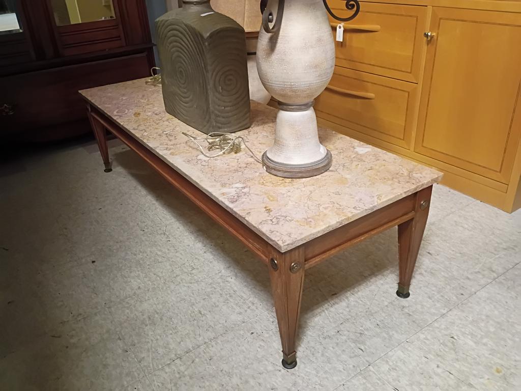 Lot 876: Rectangular Coffee Table With Rouge Marble Top.
