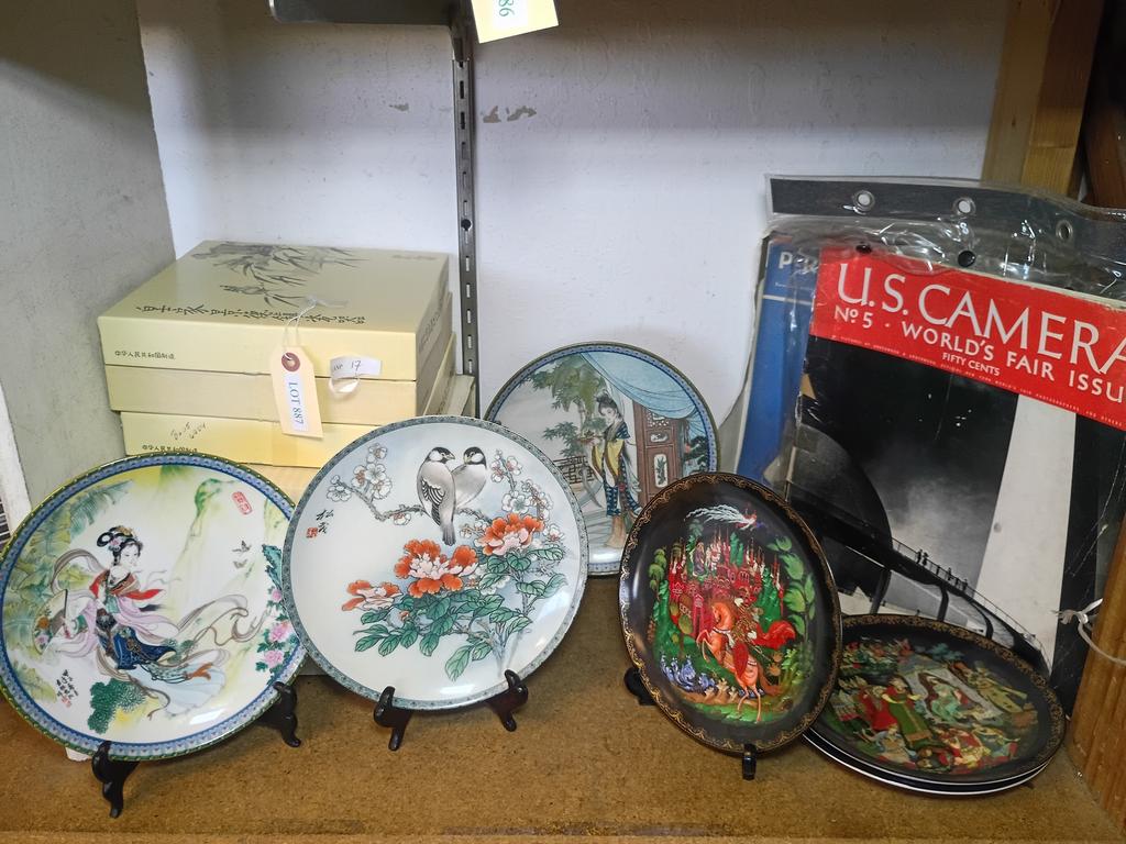 Lot 887: Shelf Of Decorative Items Incl. Asian Plates.
