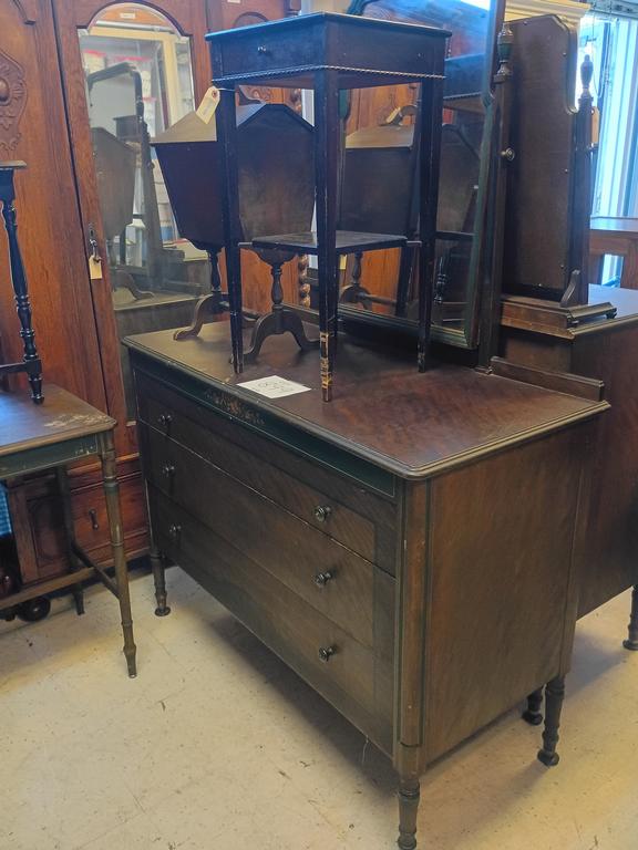 Lot 899: Berkley & Co. Mirrored Dresser, Side Table And Sewing Box.