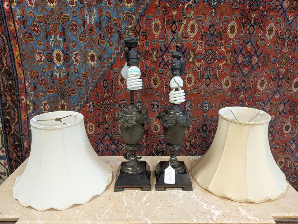 Lot 325: Pair Of Neoclassical Style 19th C. Urns Turned Table Lamps.