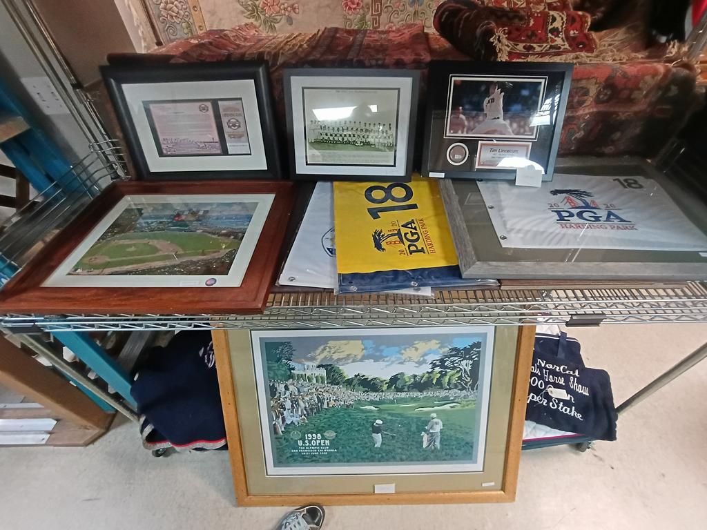 Lot 327: (3) PGA & Ryder Cup Golf Souvenir Flags And SF Giants Photos.