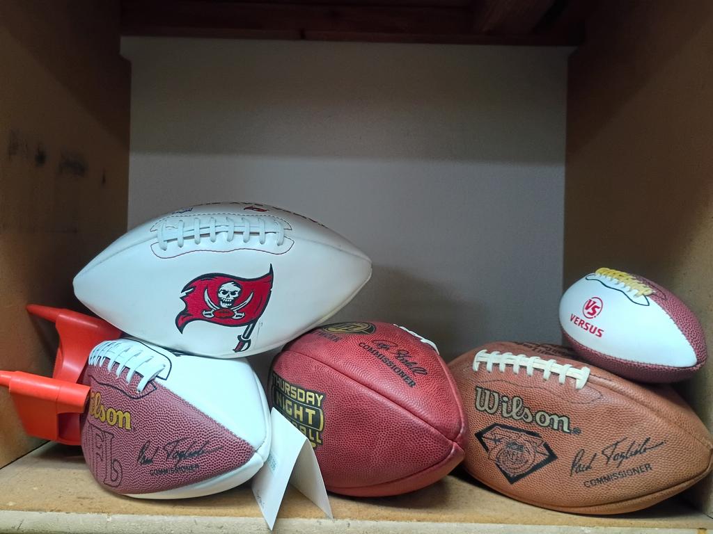 Lot 336: (4) Nfl Souvenir Footballs And 2 Mini Footballs.