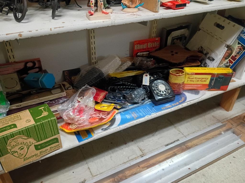 Lot 345: Large Shelf Of Household Items Incl. Rotary Telephone.