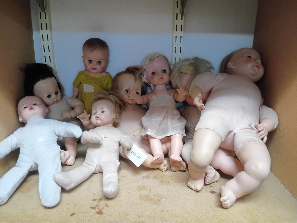 Lot 347: Shelf Of Baby Dolls Incl. 1960s Alexander.