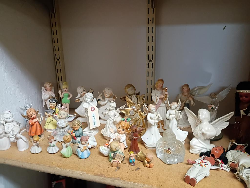 Lot 350: Shelf Of Figurines Incl. Angel Figures.