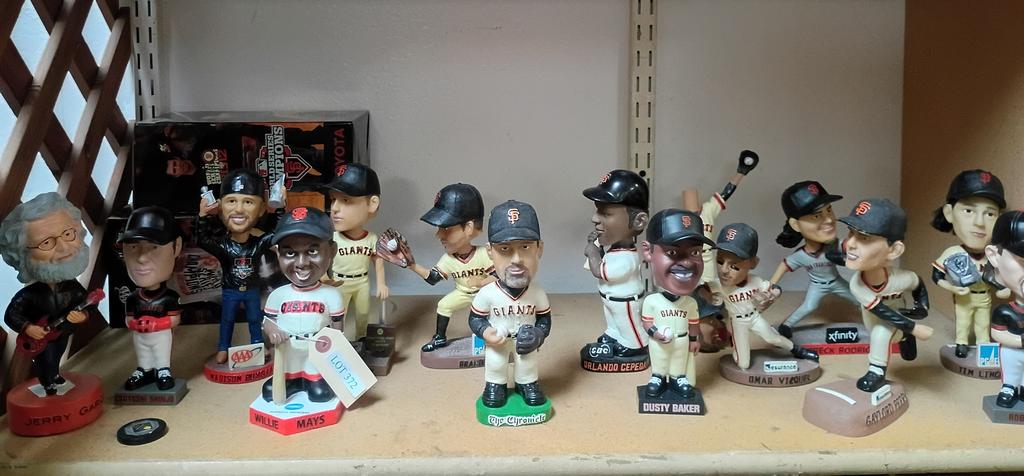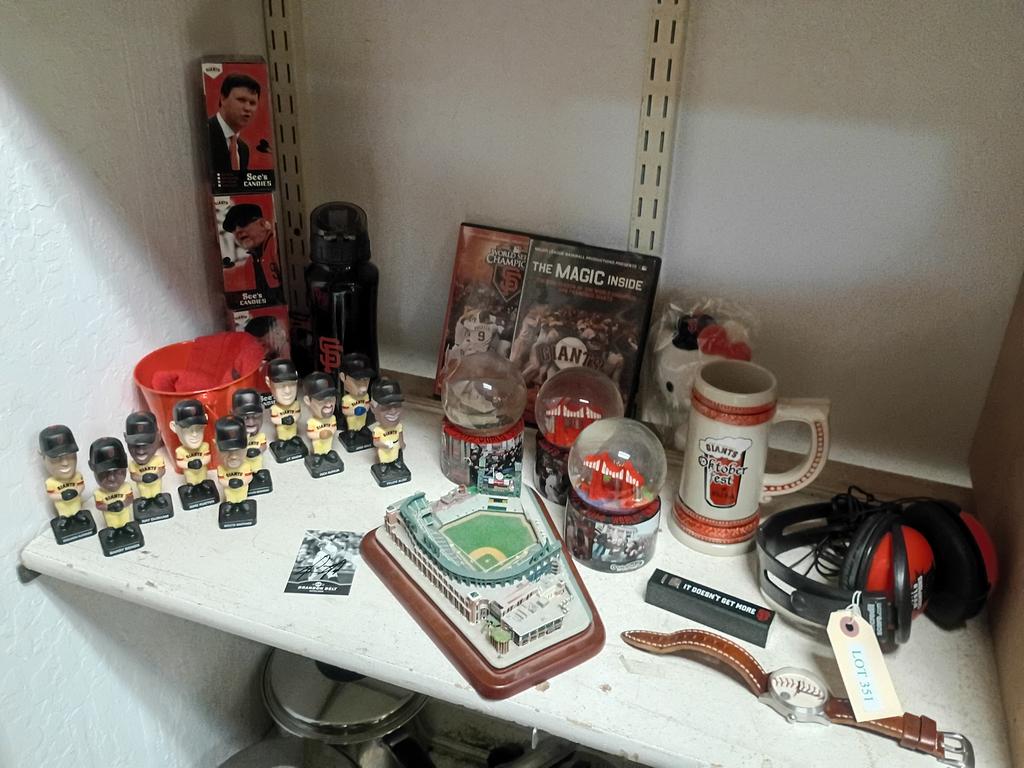 Lot 351: Group Of SF Giants Memorabilia Incl. Bobble Heads, Bottle Stoppers.