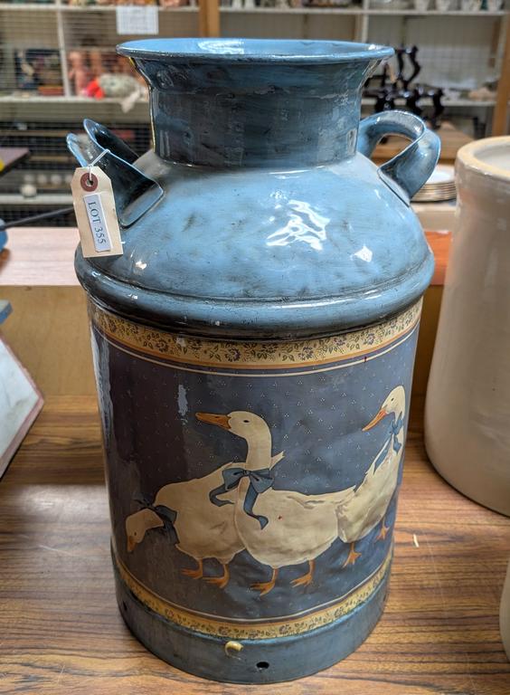 Lot 355: Vintage Large Painted Milk Can. 23" Tall.