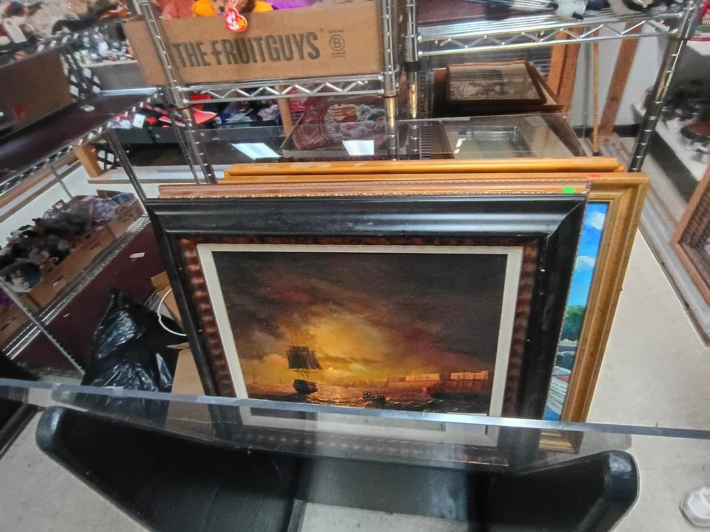 Lot 384: Shelf Of Artwork Incl. Oils, Prints.