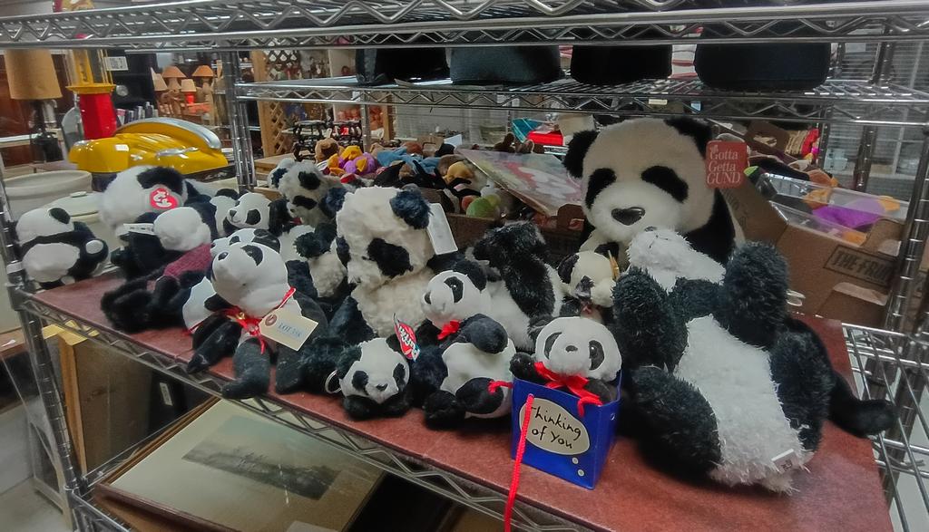 Lot 358: Shelf Of Panda Dolls.