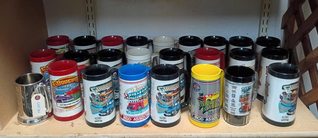 Lot 363: Shelf Of Souvenir Travel Mugs.