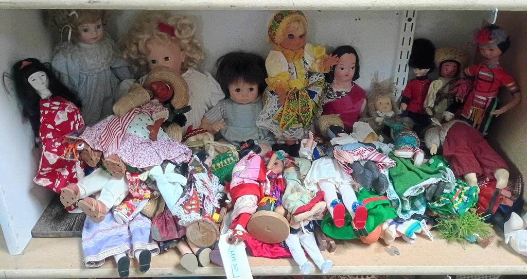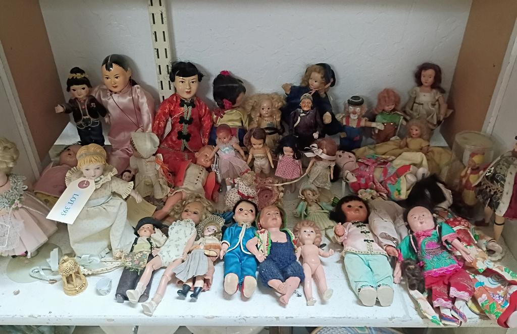 Lot 393: Shelf Of Small Dolls.