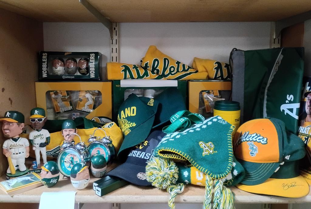 Lot 369: Group Of Oakland A's Souvenirs Incl. Caps, Bobble Heads.