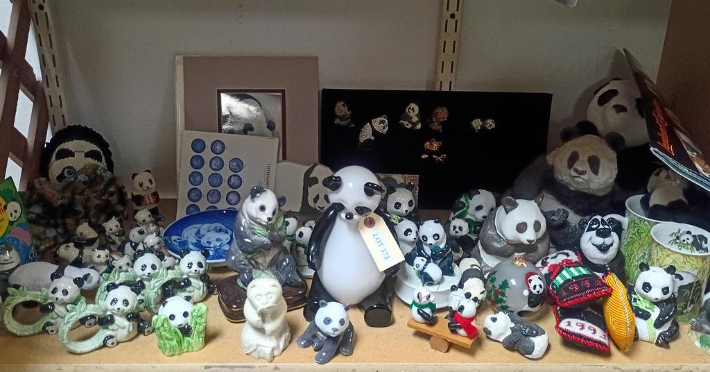 Lot 373: Shelf Of Panda Collectibles Incl. Porcelain Figures, Cups.
