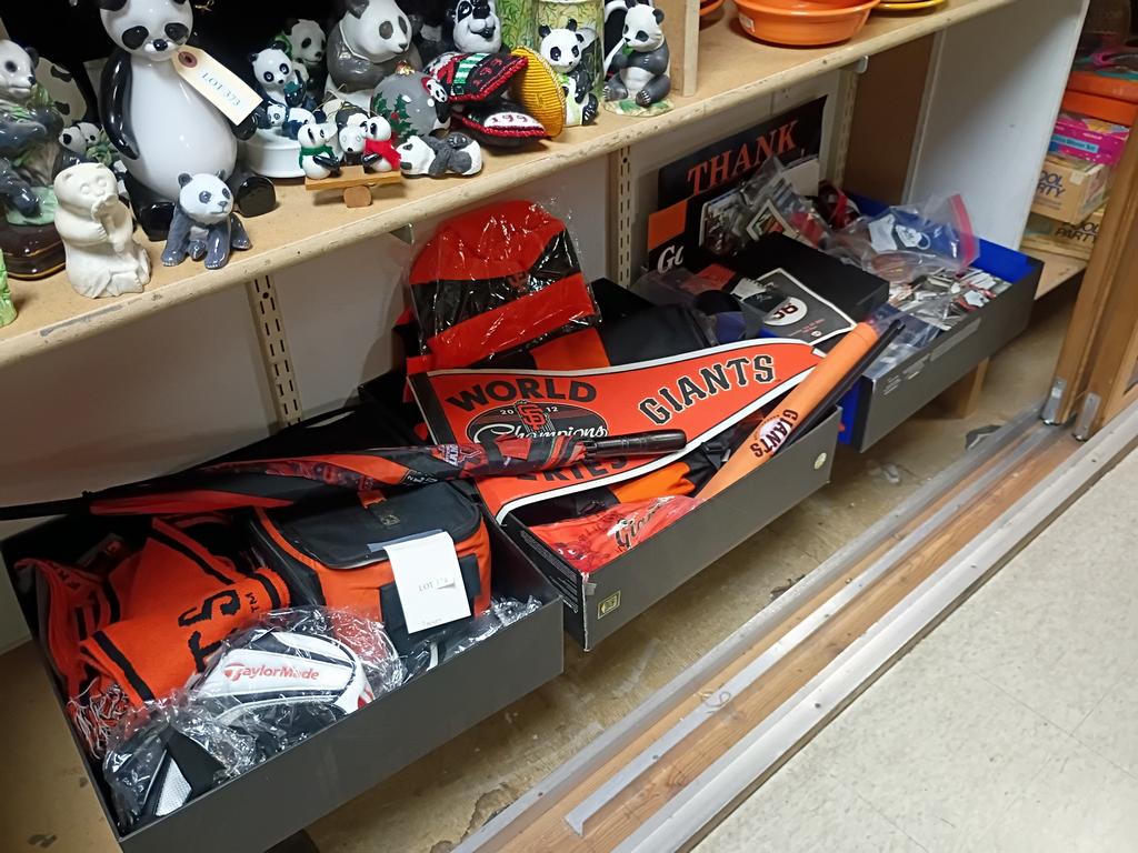 Lot 374: (3) Boxes Of SF Giants Souvenirs Incl. Pennants, Bags, Tickets.