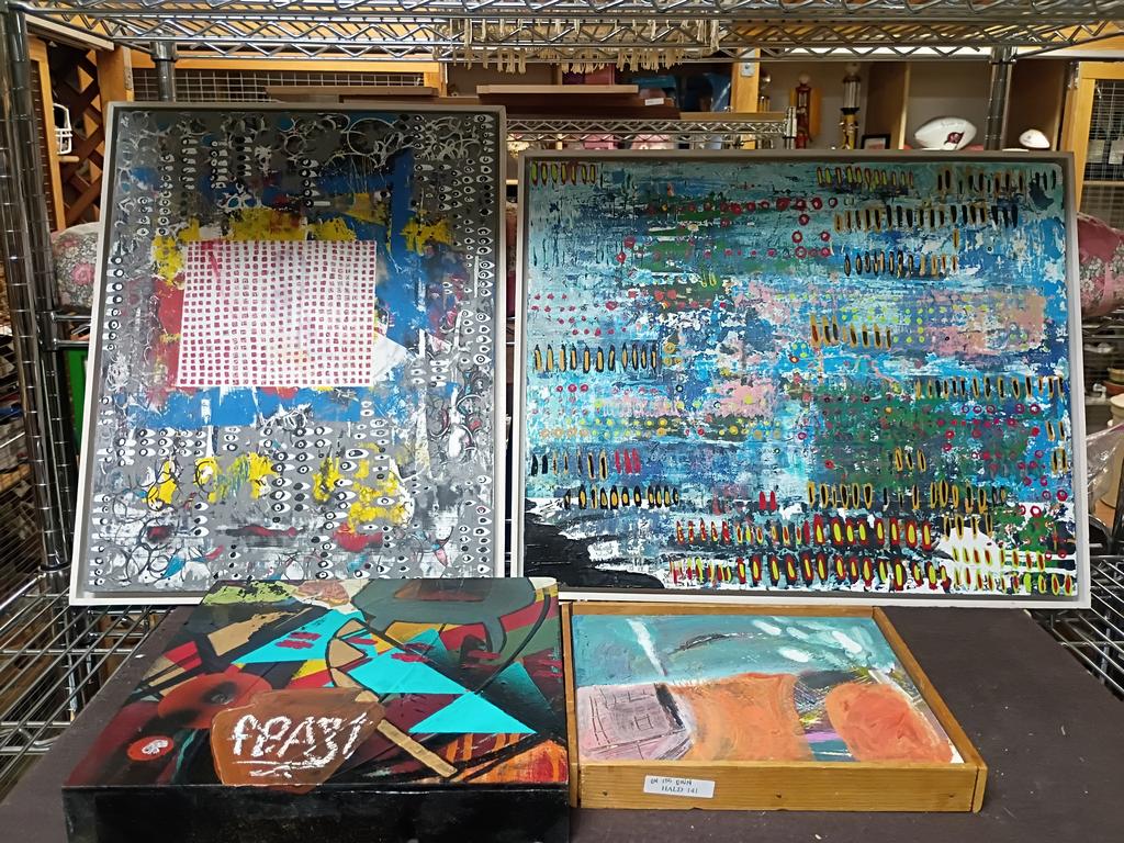 Lot 383: (2) Helen Tindel Acrylic On Board & 2 Abstract Oils On Panel.