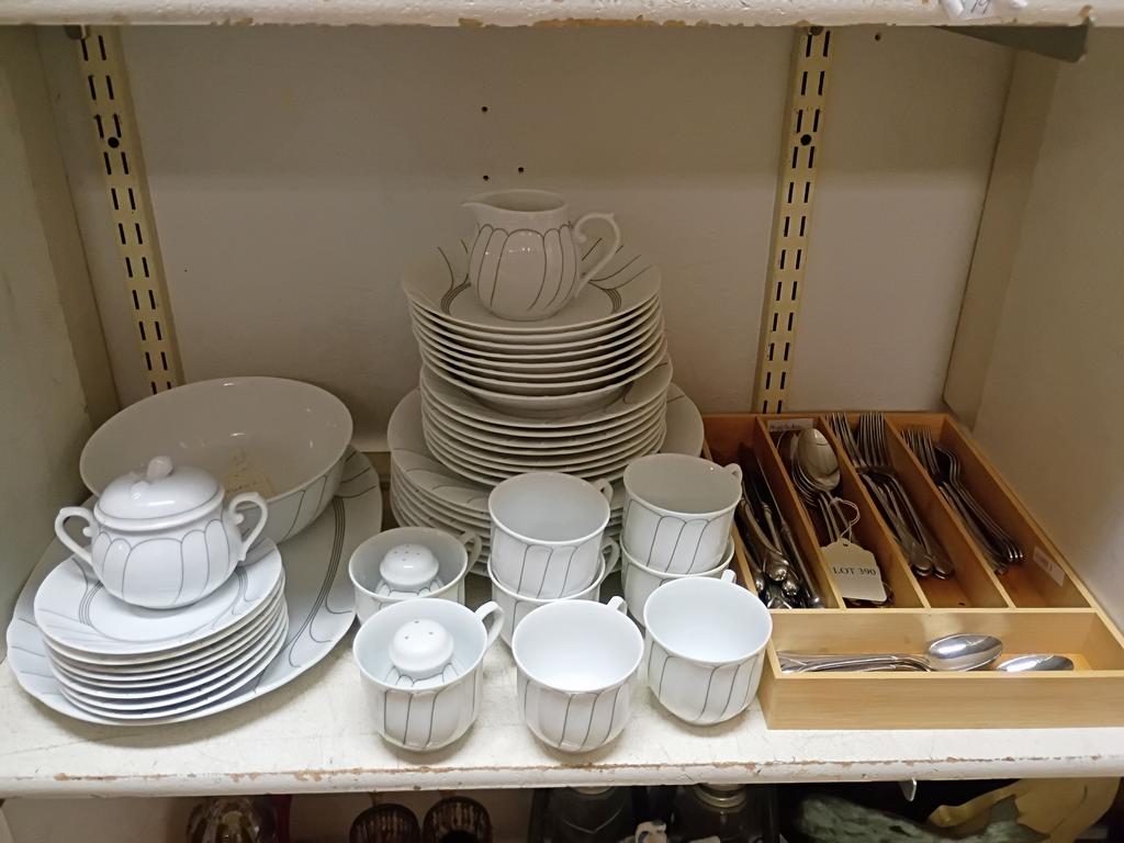 Lot 390: Mikasa Fleetwood Porcelain Dinner Service And Flatware.