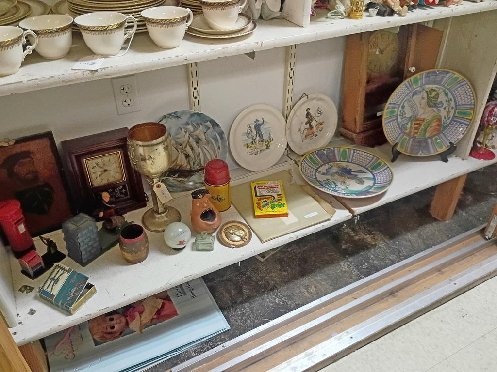 Lot 397: Group Of Collectibles Incl. Clock, Artillery Bank, Mussolini Ashtray.