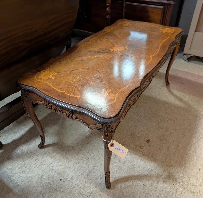 Lot 909: French Provincial Style Marquetry Coffee Table.