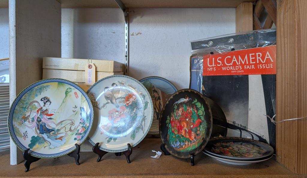 Lot 919: Shelf Of Decorative Items Incl. Asian Plates.