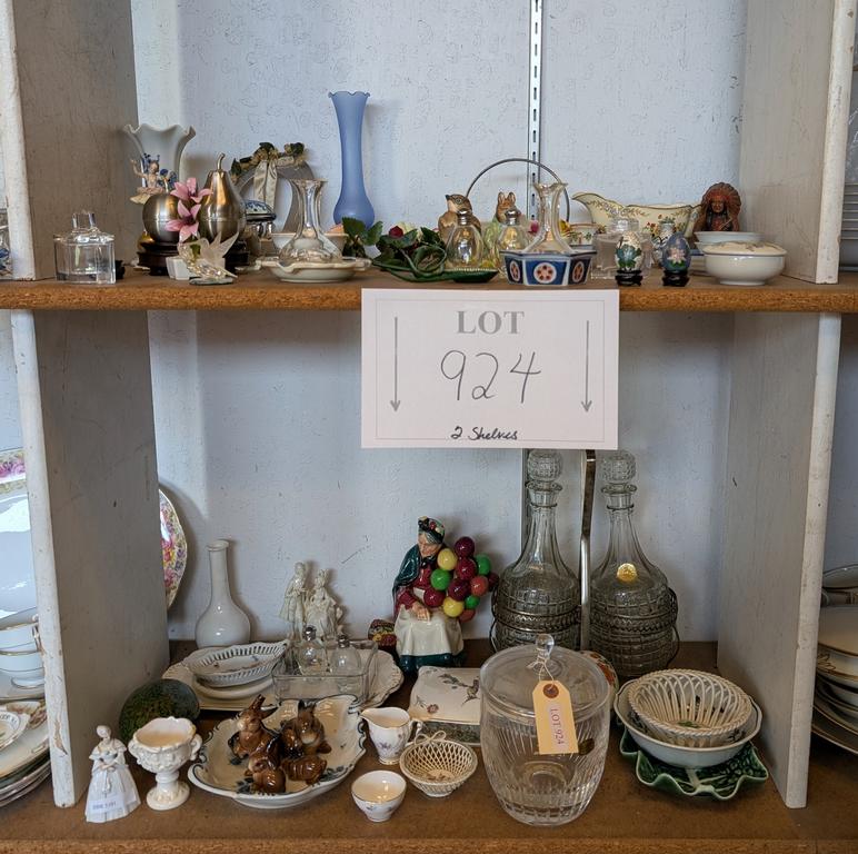 Lot 924: (2) Shelves Of Knick Knacks And China.