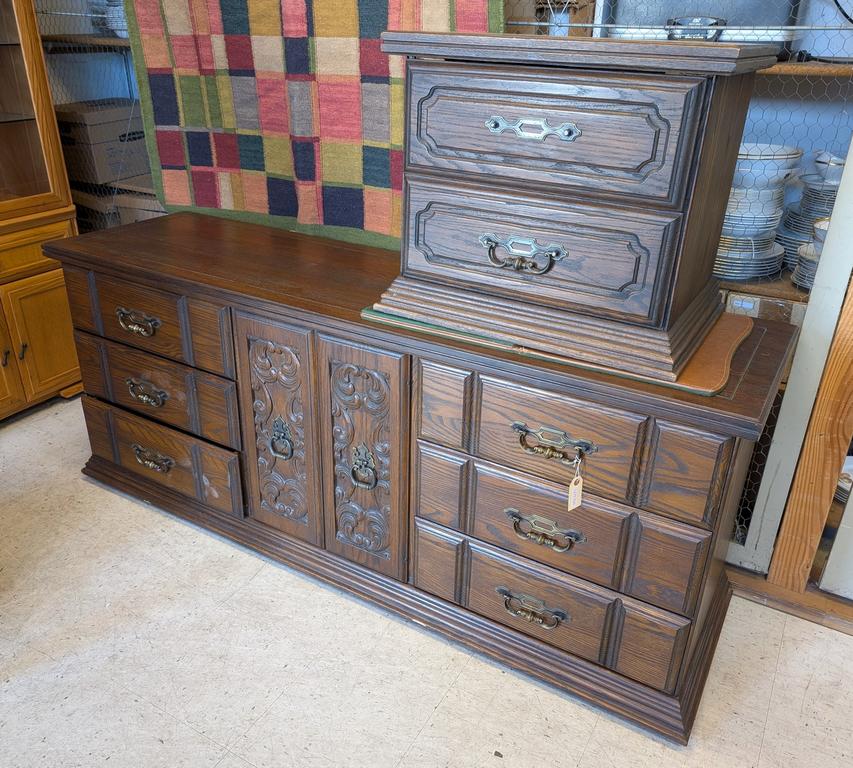 Lot 929: Oak 9-Drawer Dresser And Nightstand.