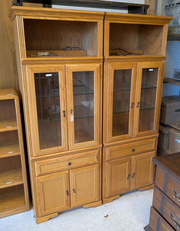 Lot 931: Pair Of Oak Single Drawer, 4-Door Tall Cabinets.