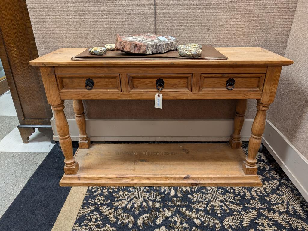Lot 417: Country Pine Style Hall Table With 3 Drawers And Lower Shelf (Alt BP)