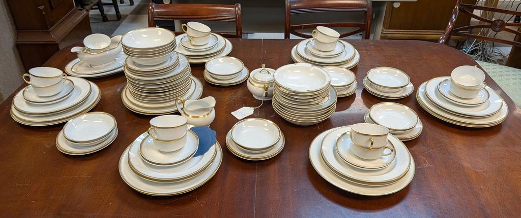 Lot 474: H & Co. Bavaria Gilt Rimmed Porcelain Dinner Service, 109 Pieces.