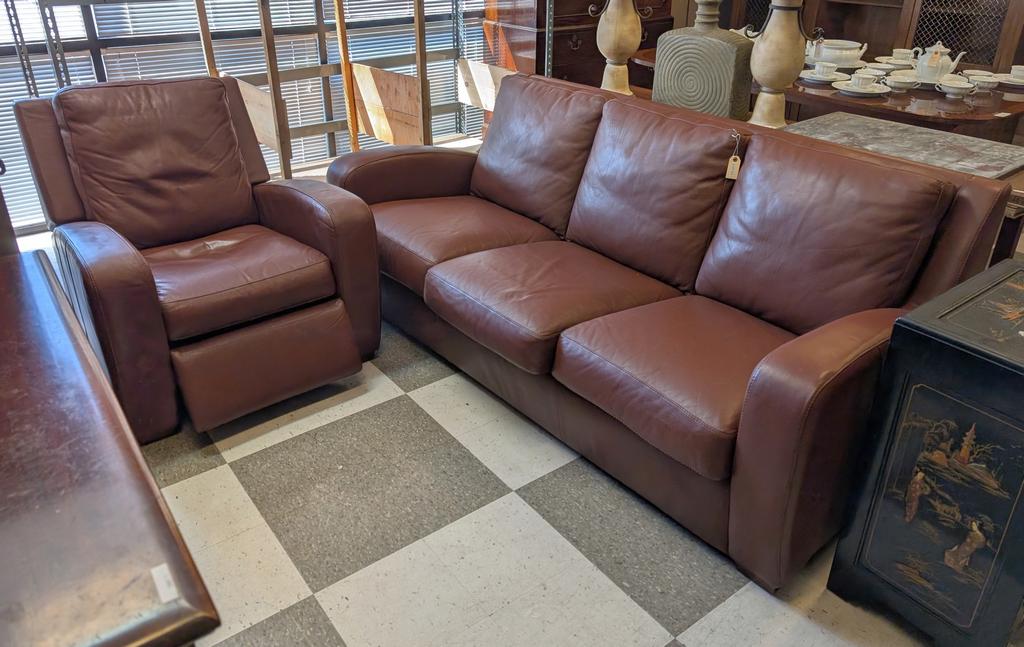 Lot 753: Crate & Barrel Leather Upholstered 3-Seat Sofa And Armchair.