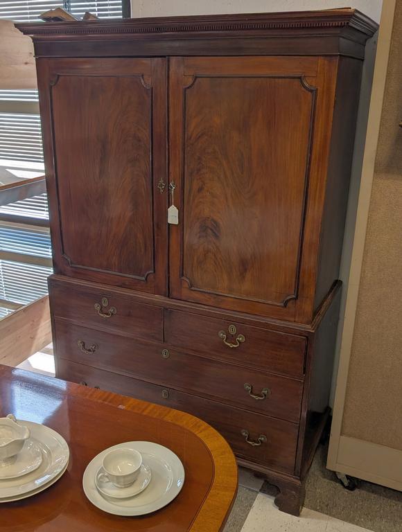 Lot 759: Circa 1910 Flame Mahogany Linen Press With 2 Upper Doors And 4 Drawers.