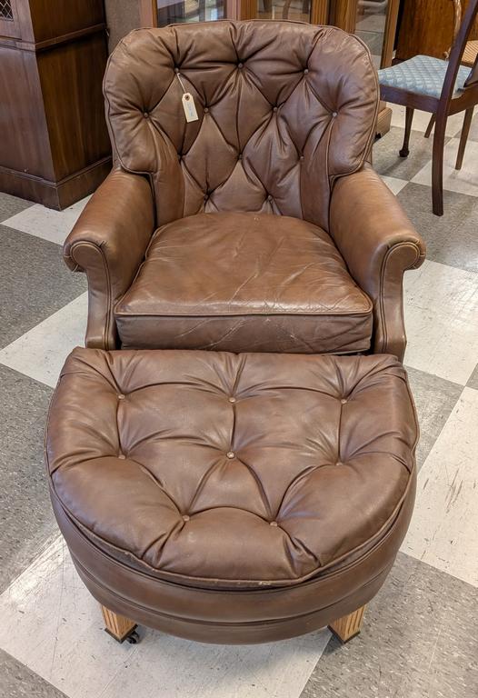 Lot 762: Brown Leather Chair And Ottoman.