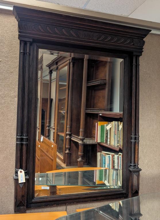 Lot 766: Oak Framed Beveled Mirror, Circa 1920s. 45" X 36".