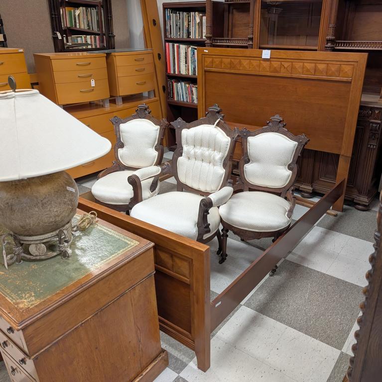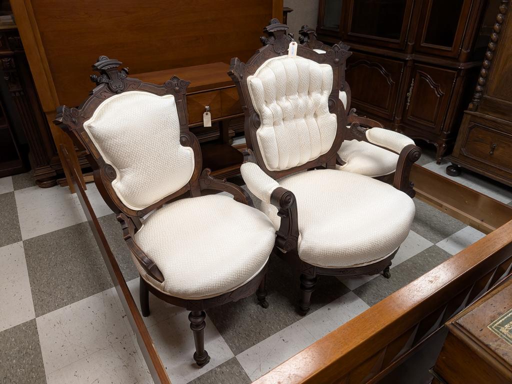 Lot 768: Set Of (3) Eastlake Style Chairs. Armchair And 2 Side Chairs With Off-White Silk Upholstery.