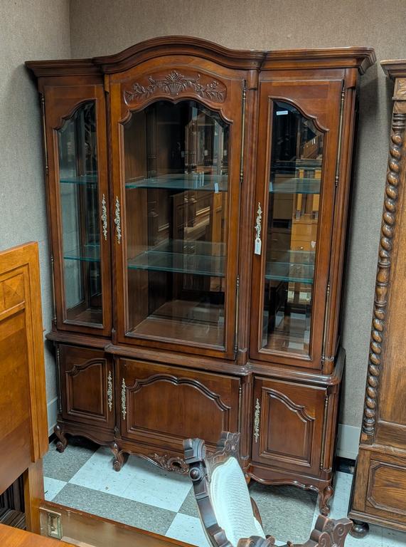 Lot 769: Century Furniture Provincial Style Triple Glaze Door China Cabinet.