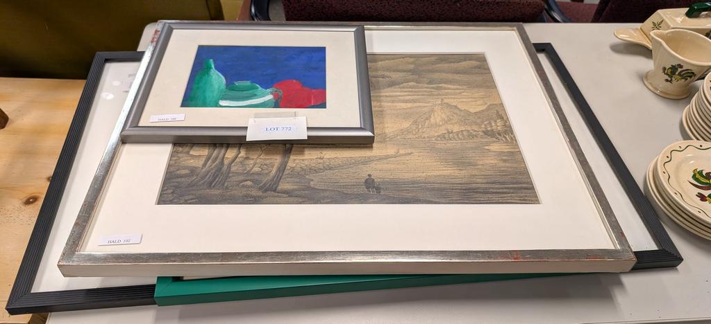 Lot 772: Group Of Framed Artwork (4) Incl. Drawing, Still Life.