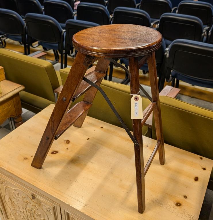 Lot 775: Folding Step Stool With Round Seat.