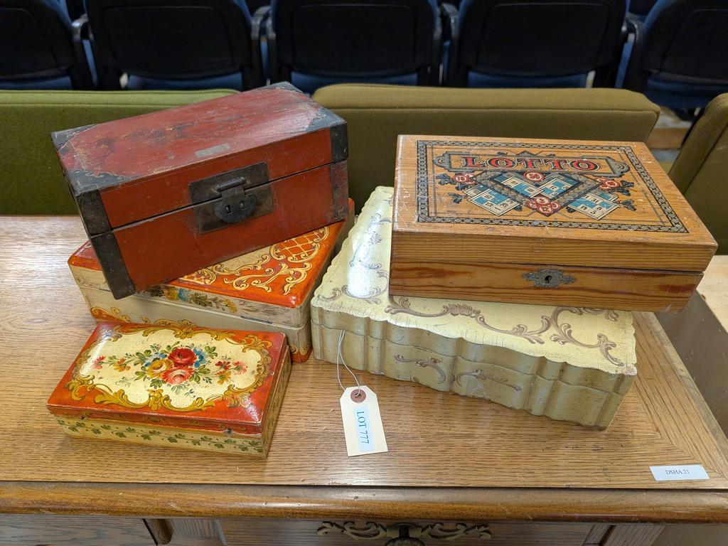 Lot 777: (5) Painted Lidded Boxes. "Lotto" & Floral Design.