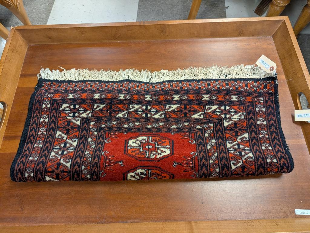 Lot 780: Oriental Hand Knotted Wool Rug. Red Field With Beige & Black Border. 4' X 2'6".