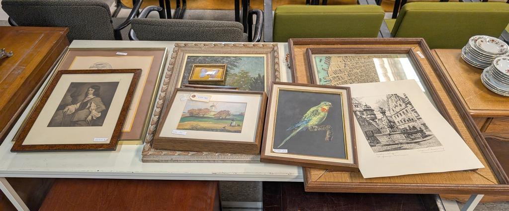Lot 788: Group Of Lithographs, Prints And Works On Silk. (14).