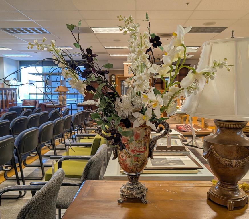 Lot 786: Contemporary Floral Urn With Faux Flowers.