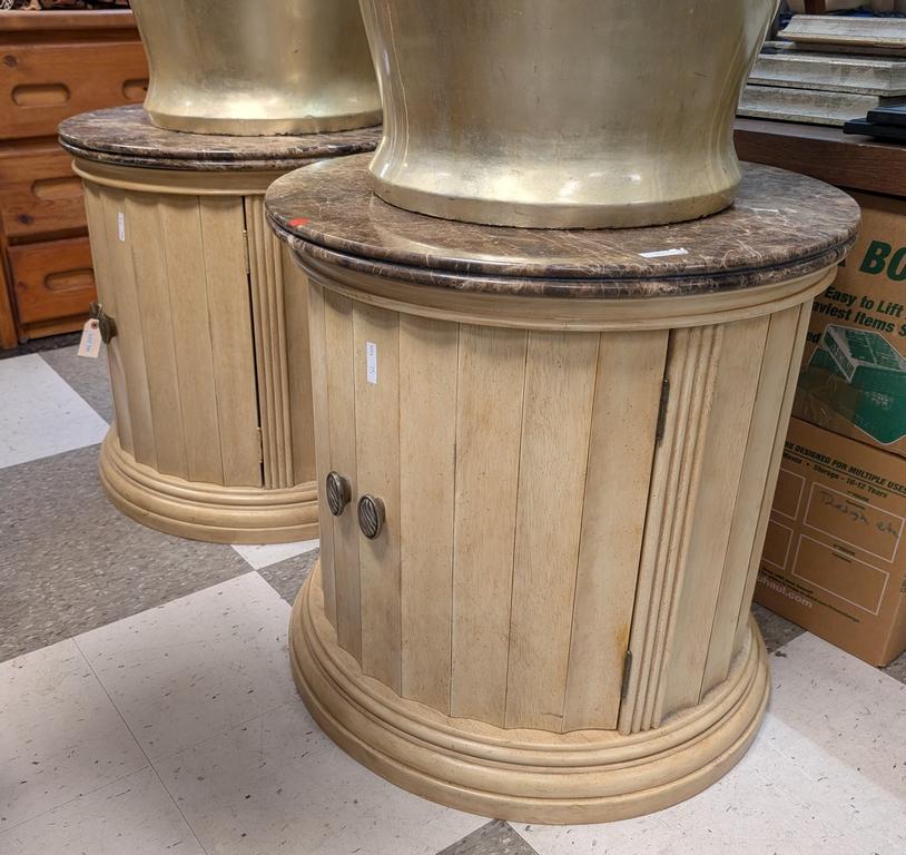 Lot 791: (2) Marble Top Cylindrical End Tables.