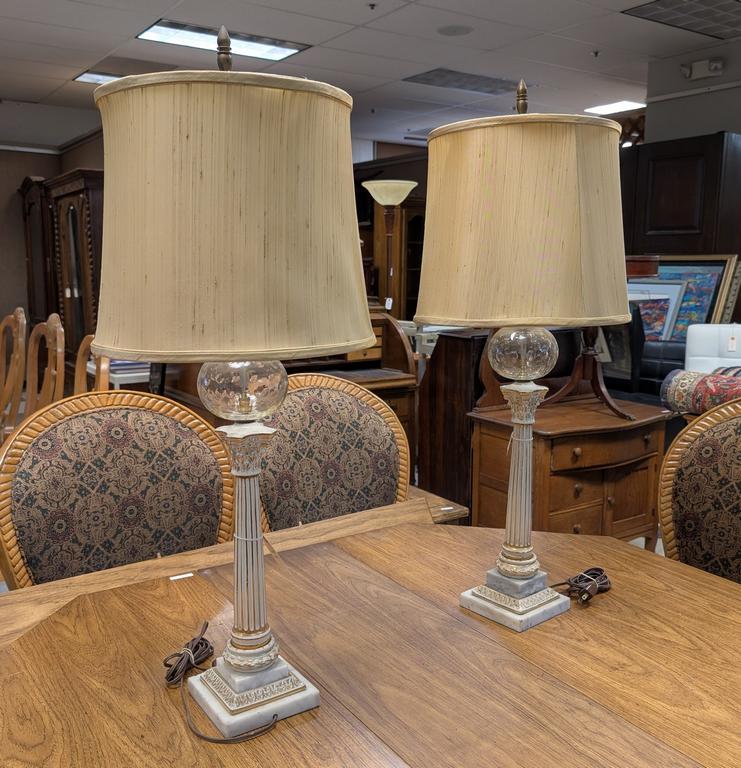 Lot 794: Pair Of Classical Column Form Table Lamps On Marble Base.