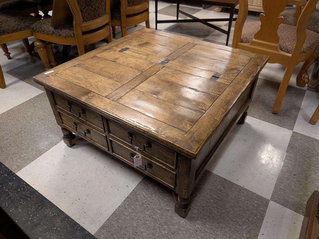 Lot 795: Contemporary Oak Coffee Table With 4 Storage Drawers And Lift Top.