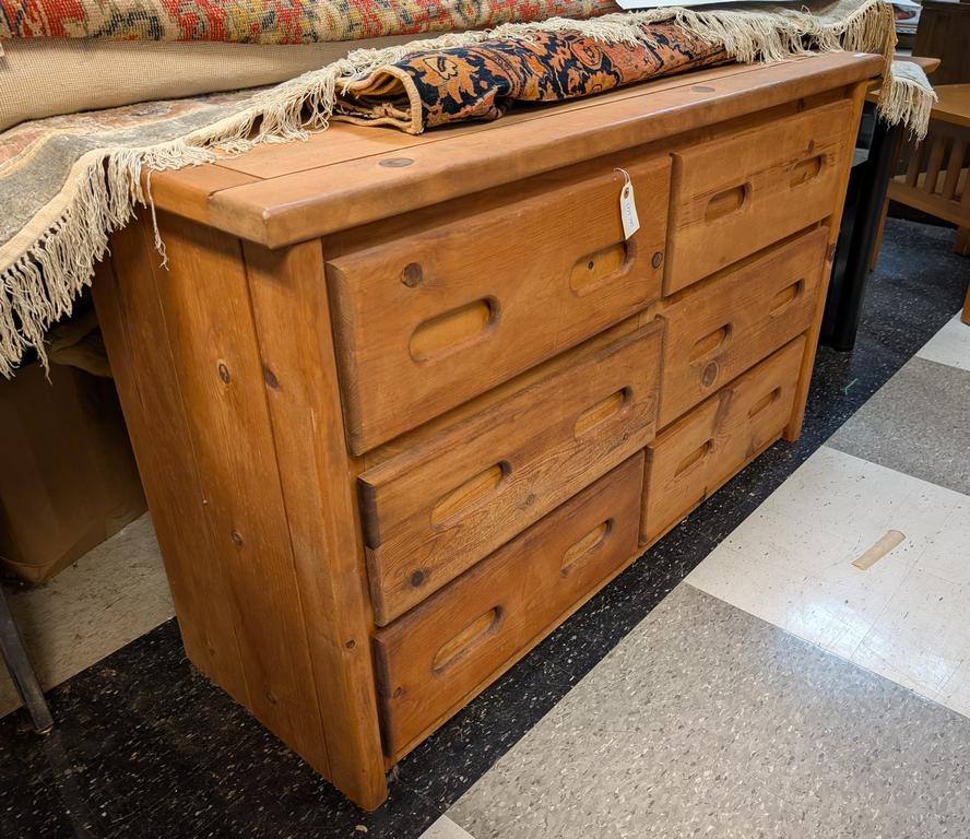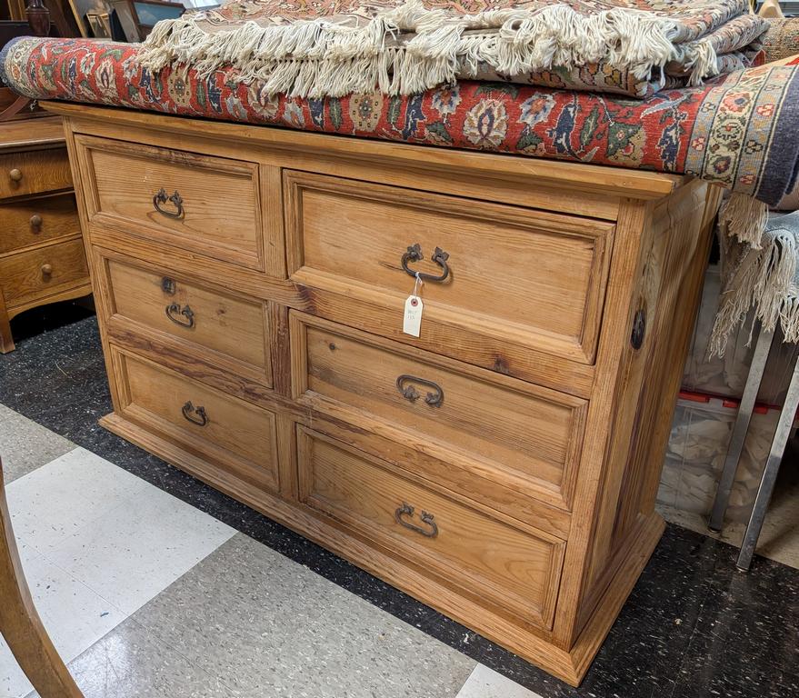 Lot 796: Country Pine 6-Drawer Dresser With Iron Pulls.