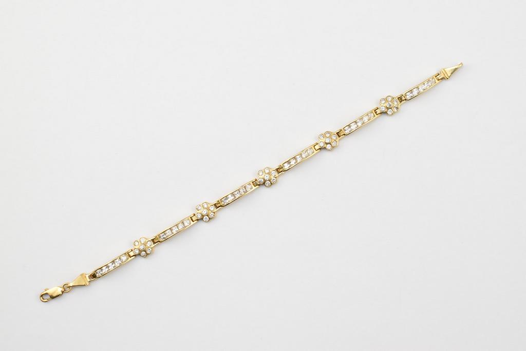 Lot 106: 14K Yellow Gold Bracelet with Clear Stones.