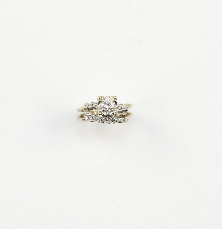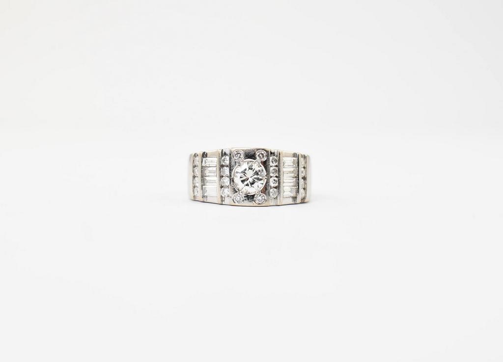 Lot 109: 14K White Gold & Diamond Double Band Ring.