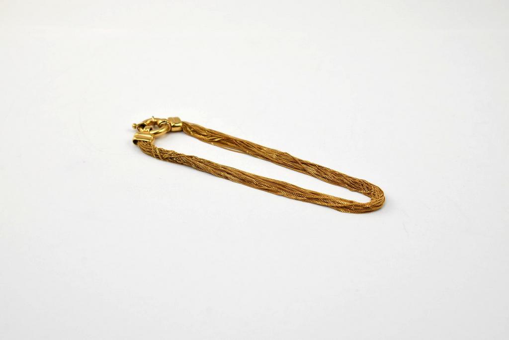 Lot 108: 18K Italy Yellow Gold Multi-Strand Bracelet.