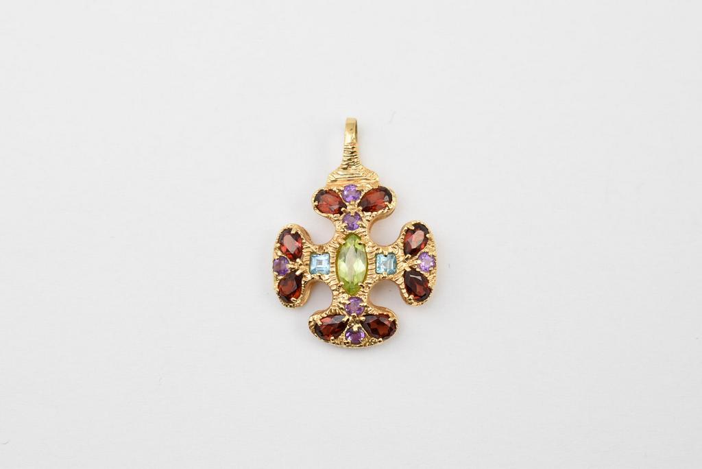 Lot 110: 14K Yellow Gold Pendant with Stones.