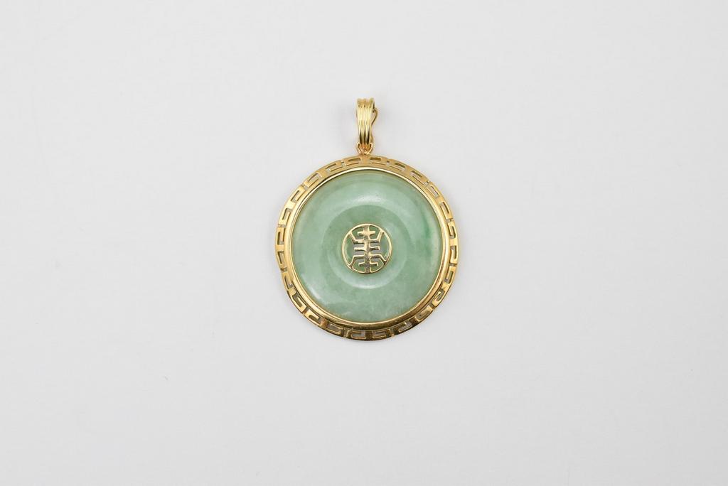 Lot 112: 14K Yellow Gold and Jade Pendant.